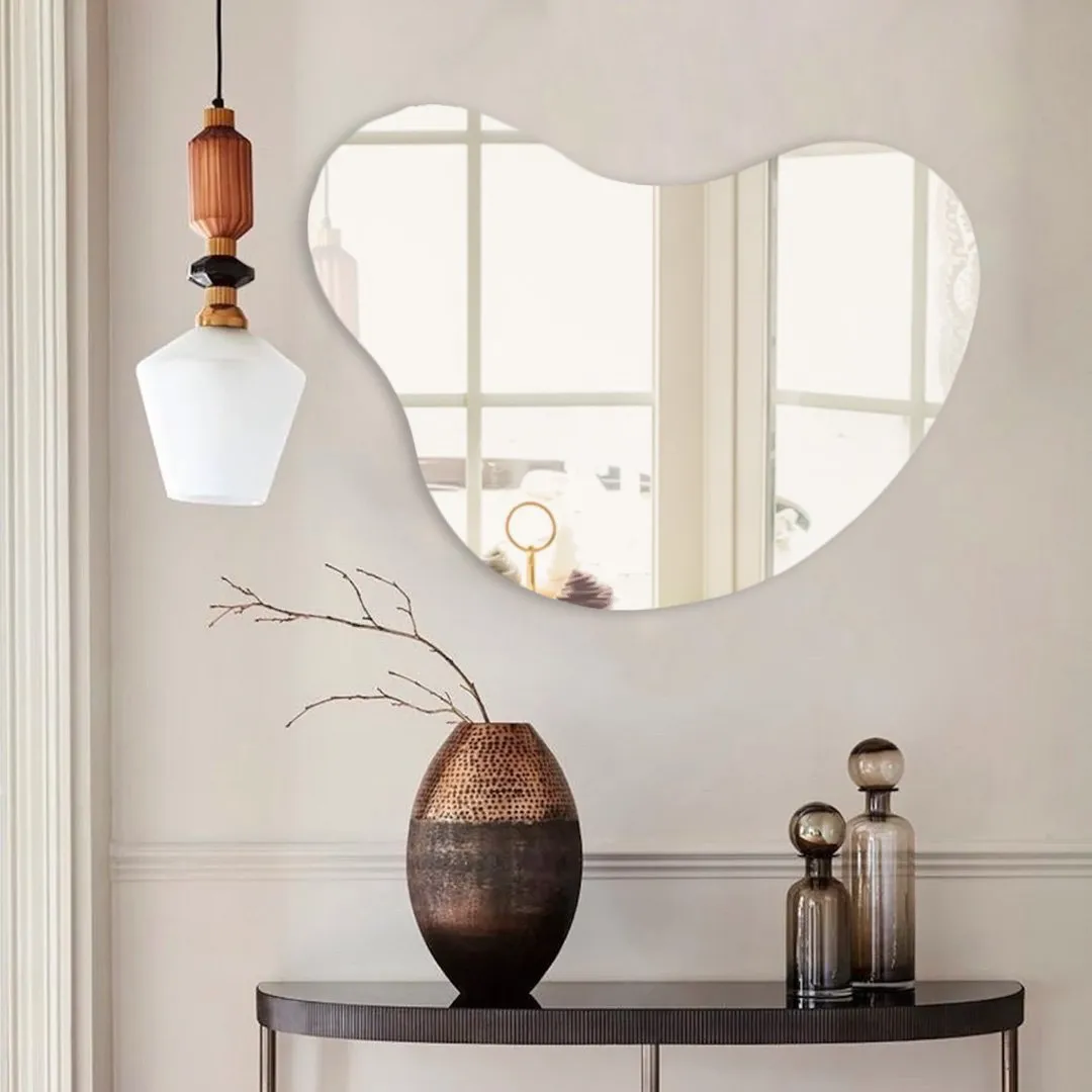 يمنحها الشكل الديكوري حضورًا لافتًا على الجدار، مع سطح مرآة نقي يعكس الضوء ويزيد من اتساع المكان بصريًا.